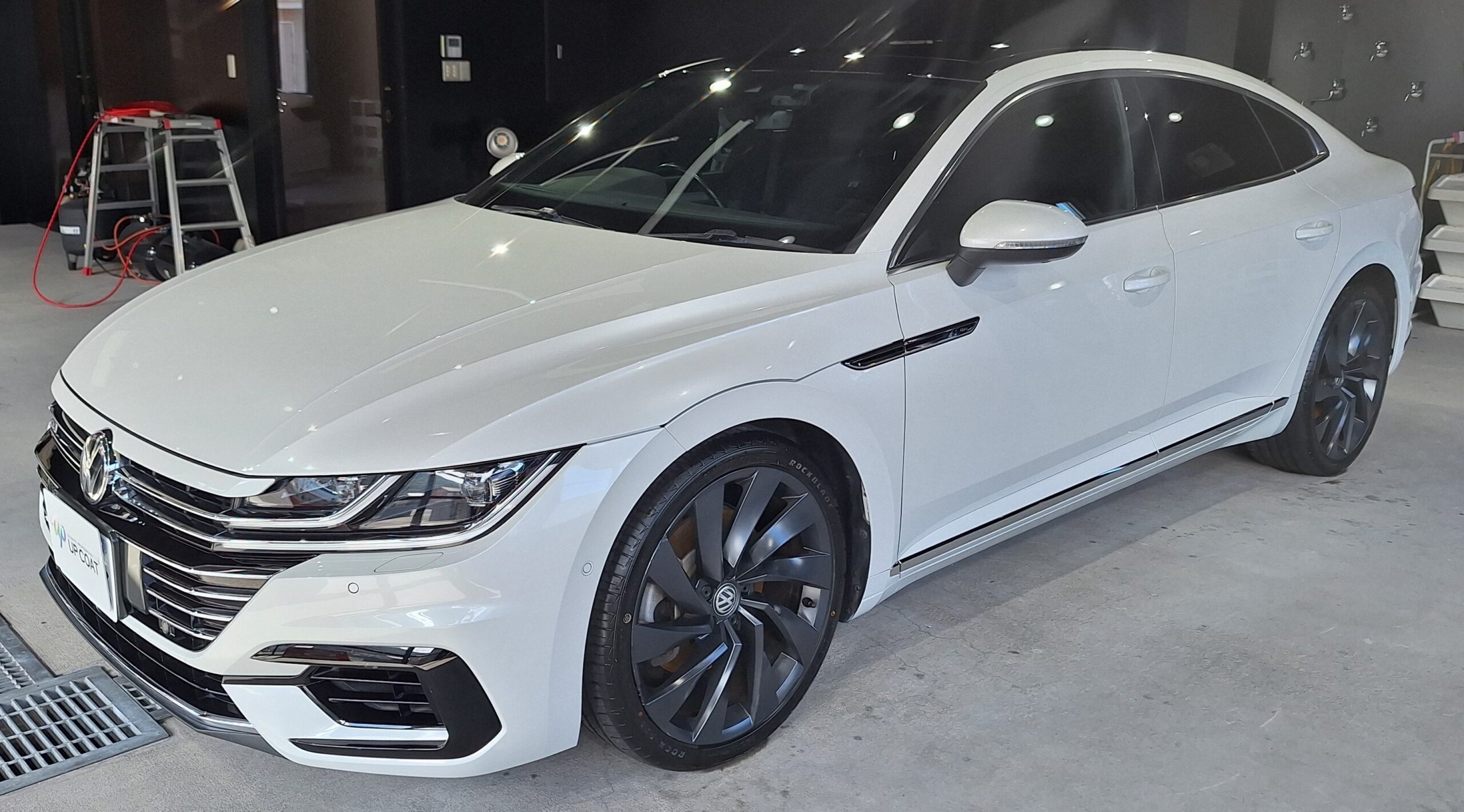 翌日、ボディの研磨、最終日に7Gコーティングを塗布、アルミモールにもコーティングかけました。
